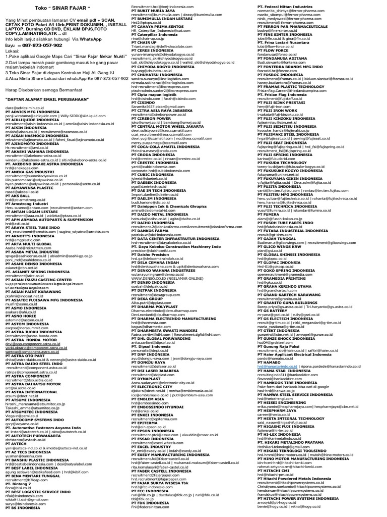 Pt Hi Lex Indonesia from site-hilex.hi-lexindonesia.com Pt indosafety manufacture cikarang : Posts about pt.indo safety manufacture. Welcome to pt indosafety guardian. See pt indosafety sentosa industries's products and customers. Indosafety sentosa industry pt is an enterprise based in indonesia. Automotive spare parts and precision parts manufacturer. Saat ini pt indosafety sentosa industry kembali membuka lowongan kerja operator produksi terbaru dengan persyaratan lowongan sebagai berikut untuk sahabat jobslike, apabila anda berminat dan memenuhi persyaratan dari loker operator produksi pt indosafety sentosa industry diatas, silahkan. Indosafety sentosa industry pt is an enterprise based in indonesia.